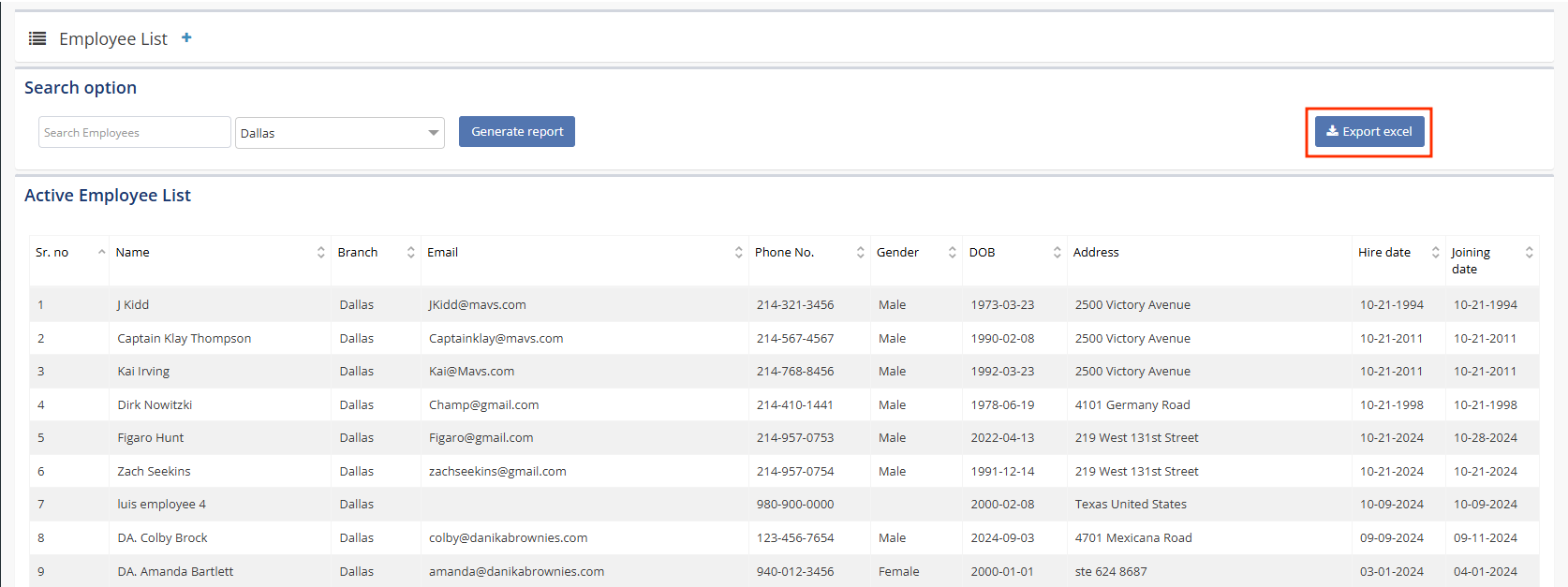 The Active Employees Report provides a comprehensive overview of all employees currently active in the system, offering essential details for efficient employee management. The report includes the following key information for each employee: