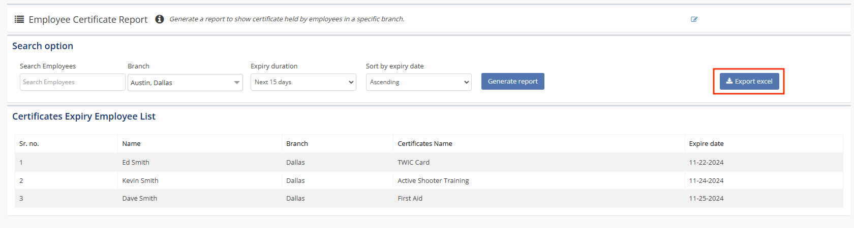 This report is helpful for ensuring that employees' certifications are kept current, helping to avoid lapses in compliance and maintain the necessary qualifications for their roles.