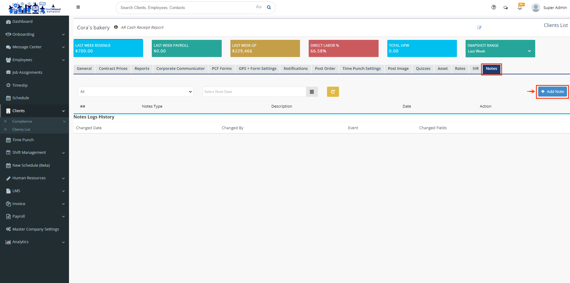 - When you have the note described as you desire. Click the button "Add" to save the changes. In this way, a note would be shown when employees clock in.