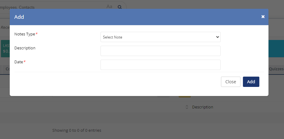 - There you can select the Notes Type, the note's Description, and the Date when you want the note to be sent.