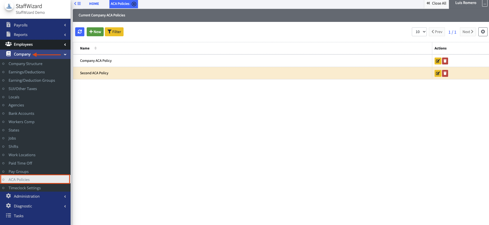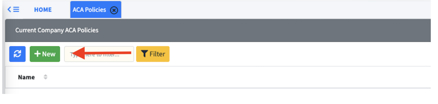 To set up a Company ACA Policy, navigate to the "Company" module and click "ACA Policies".