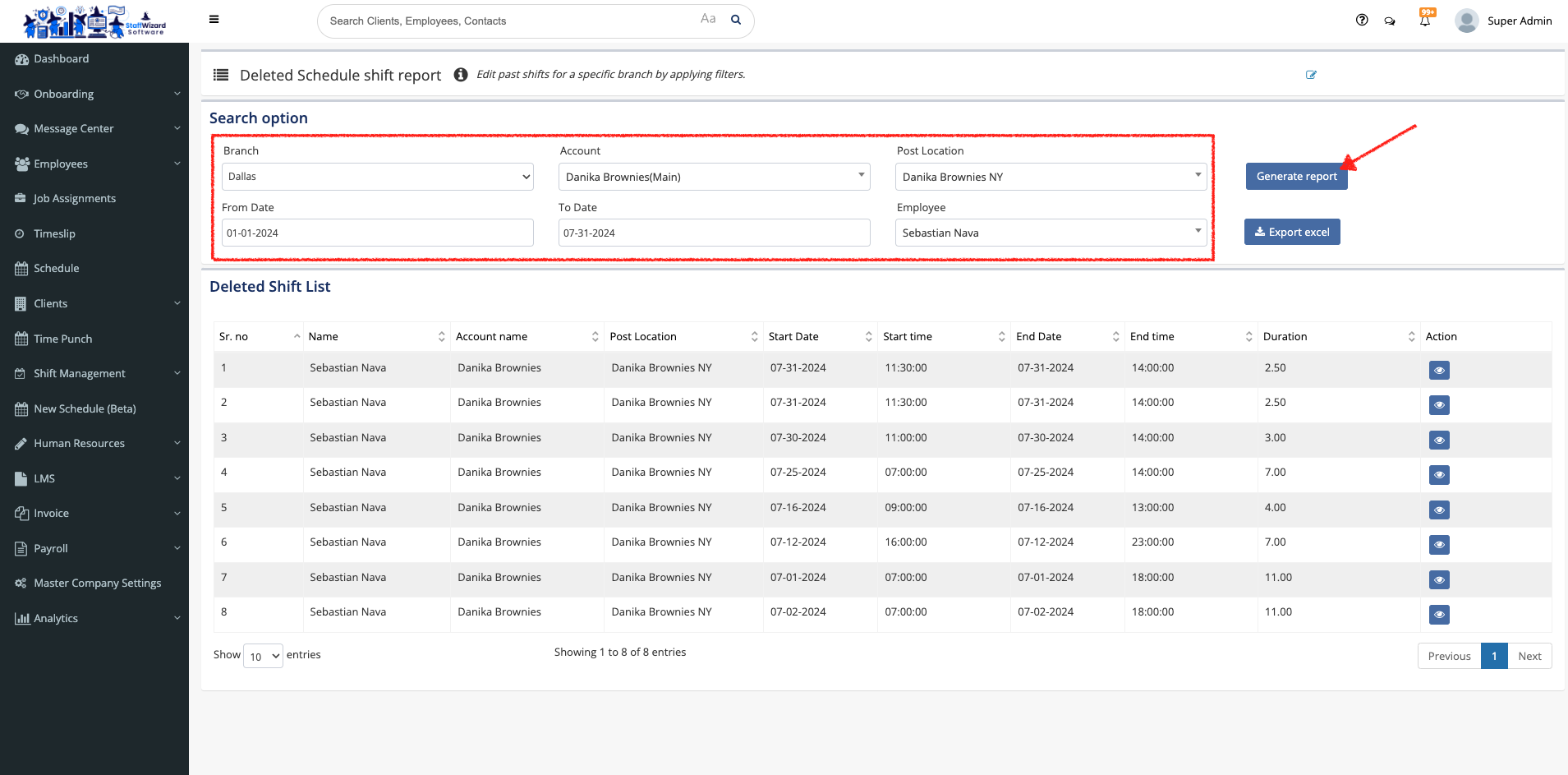 Deleted Scheduled Shift Report