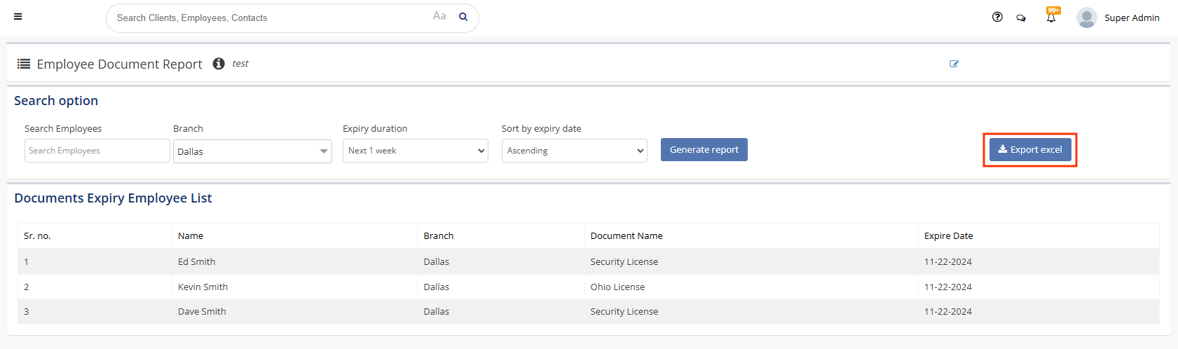 This report includes detailed information about employee documents with upcoming expiration dates: