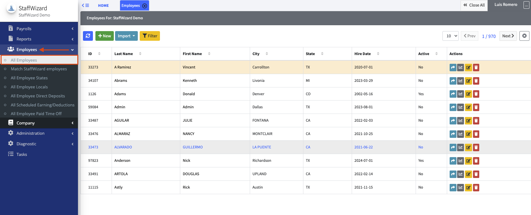 From this section, you can locate the employee you would like to set their ACA settings.