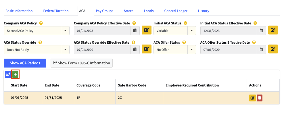 - Sets which ACA Policy the employee is using