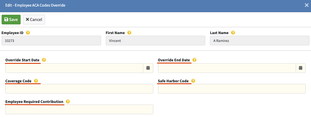 - You can also input any ACA overrides to adjust the 1095 for the employee as needed.