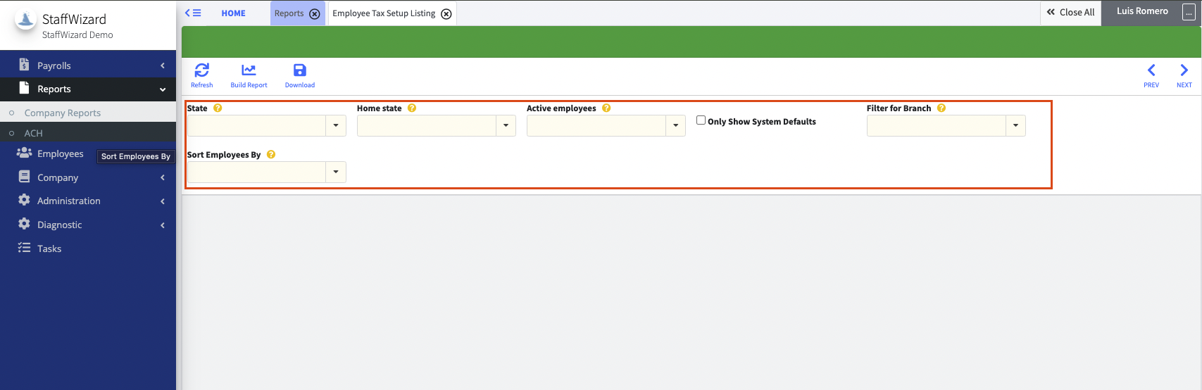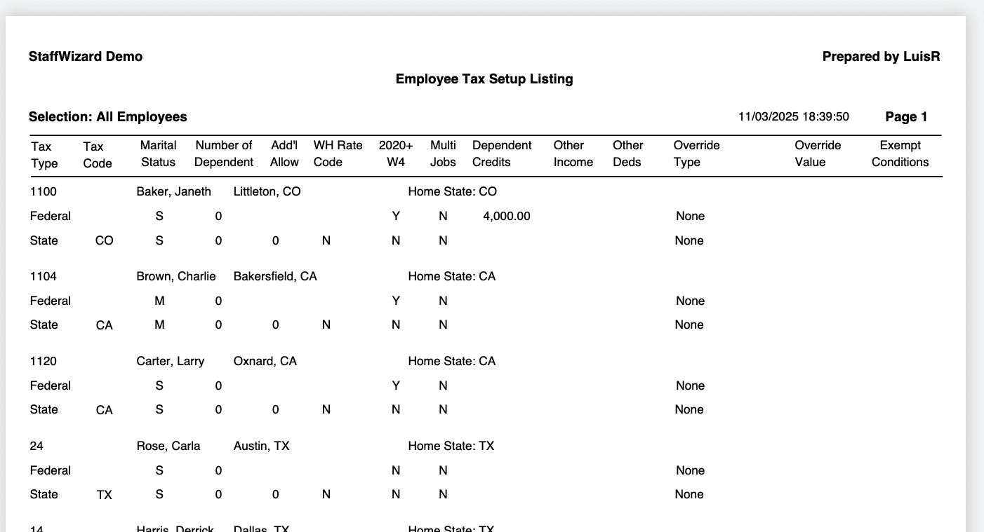 Employee Tax Setup Listing Report