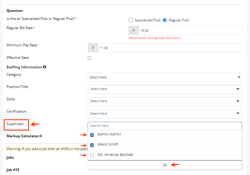 - Confirm which supervisors will be notified by going to the Client profile, then scroll down until you see "Post Location" because the notifications are tied to the post location. Click the option to edit it and scroll down until you see "Supervisor". There you will be able to select one or multiple supervisors.