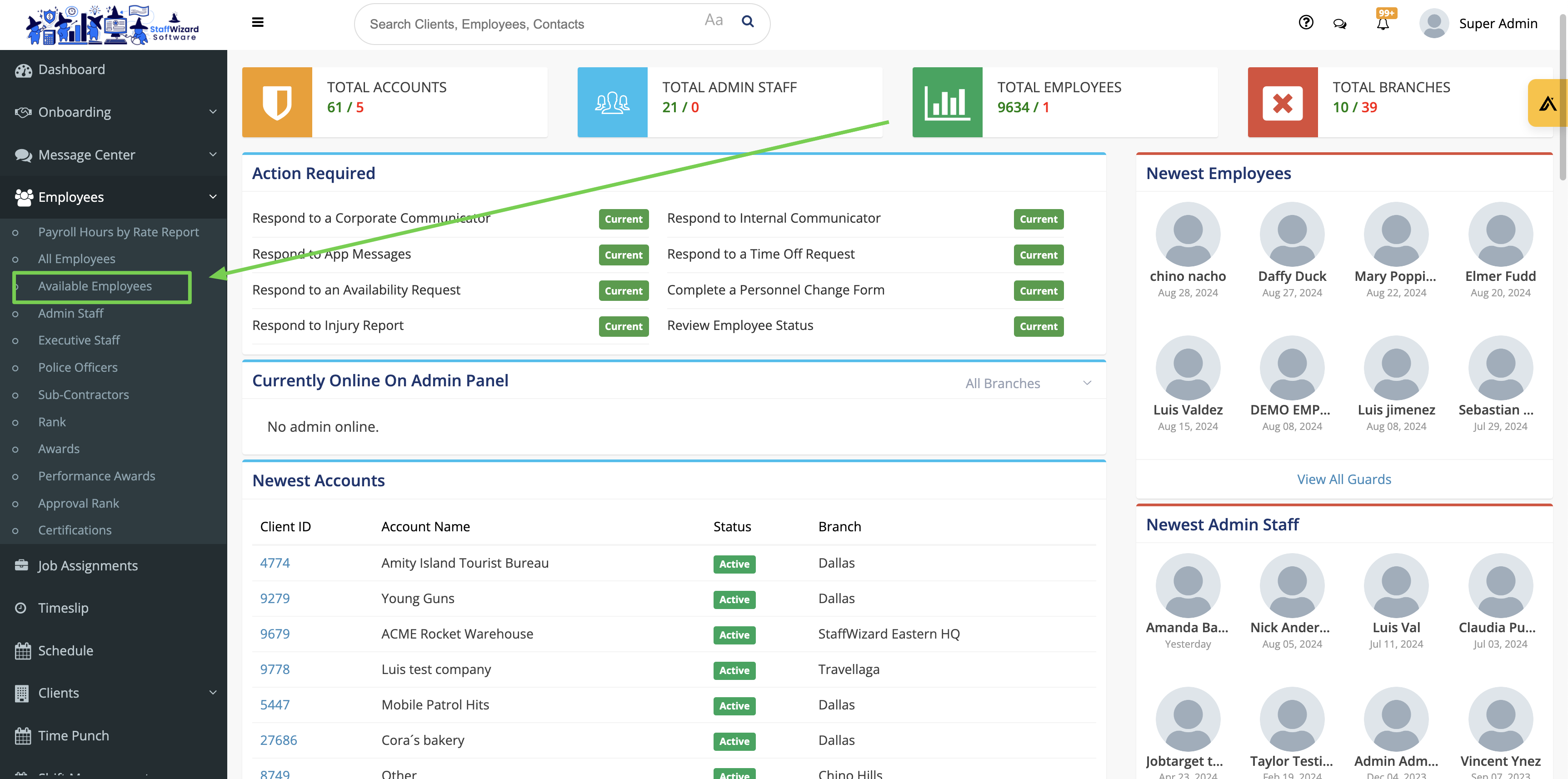 - To set the federal tax override for an employee, first navigate to the "Employees" module and press any of the employee types. For this walkthrough, "Available Employees" will be used but the steps below will be the same for any employee type.