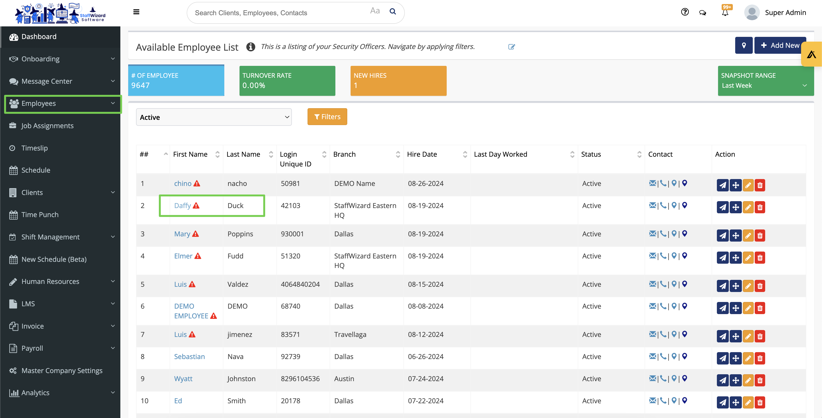 - Then find the employee you desire to adjust and click their name.