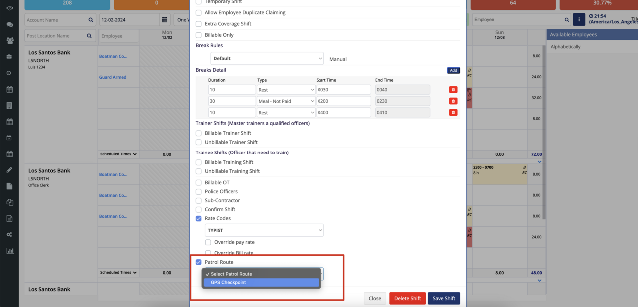 The GPS Checkpoint group can then be assigned to a specific shift so that only those specific checkpoints are shown to the officer to scan within their shift.