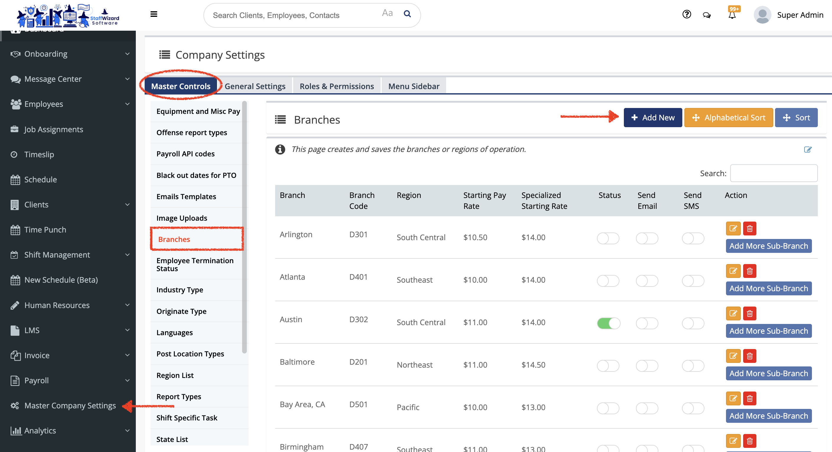 - Go to the 'Master Company Settings' tab on the main menu on the left-hand side of the StaffWizard page.