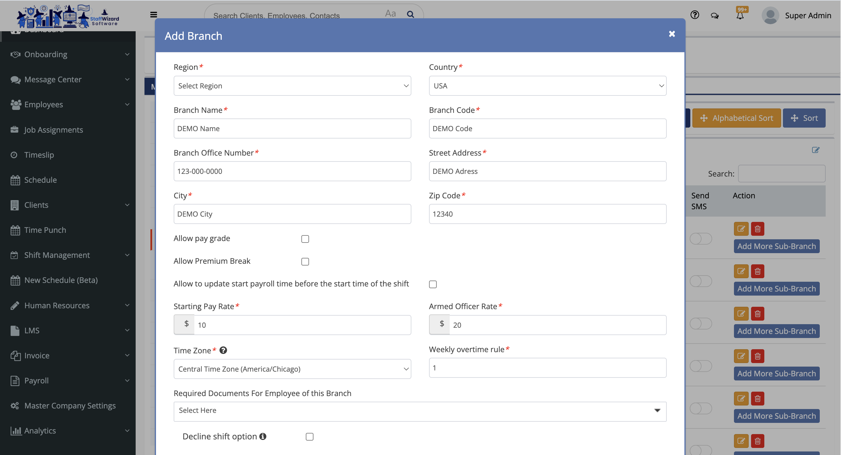 - A window will appear where you will have to fill out the necessary information to add a new branch.