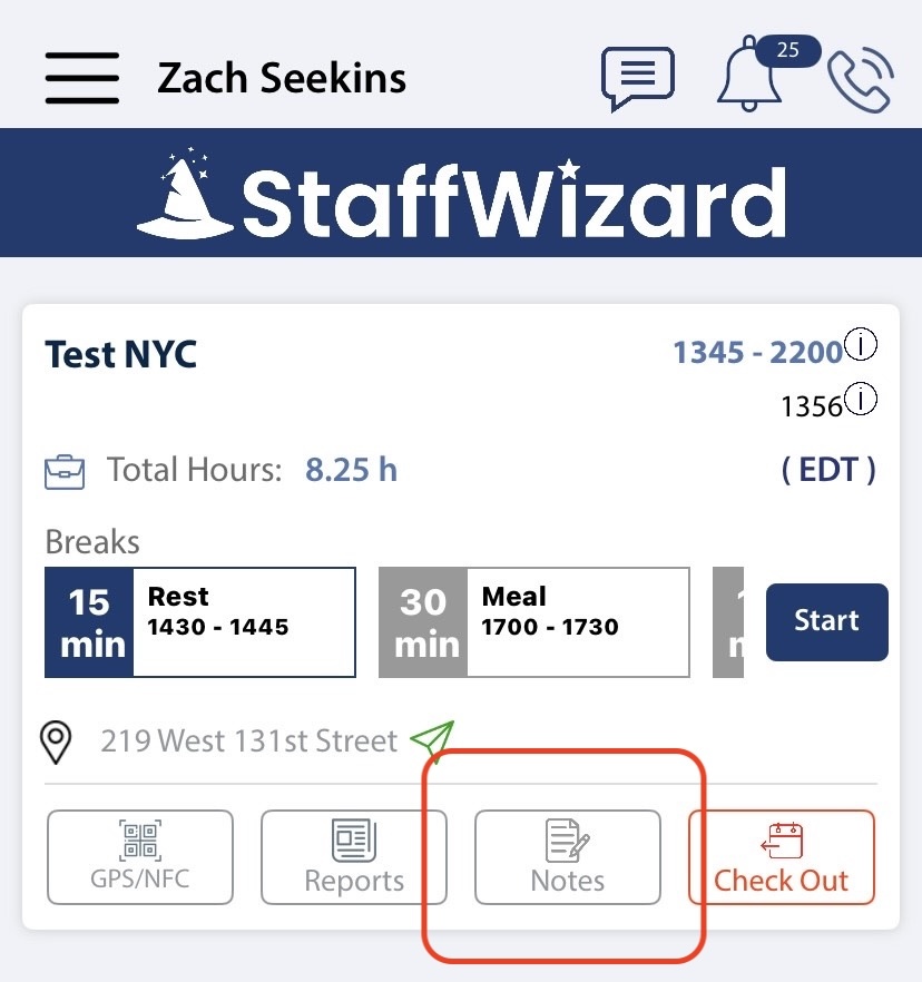 Once created, the note will appear in the employee’s mobile app under the Notes section.