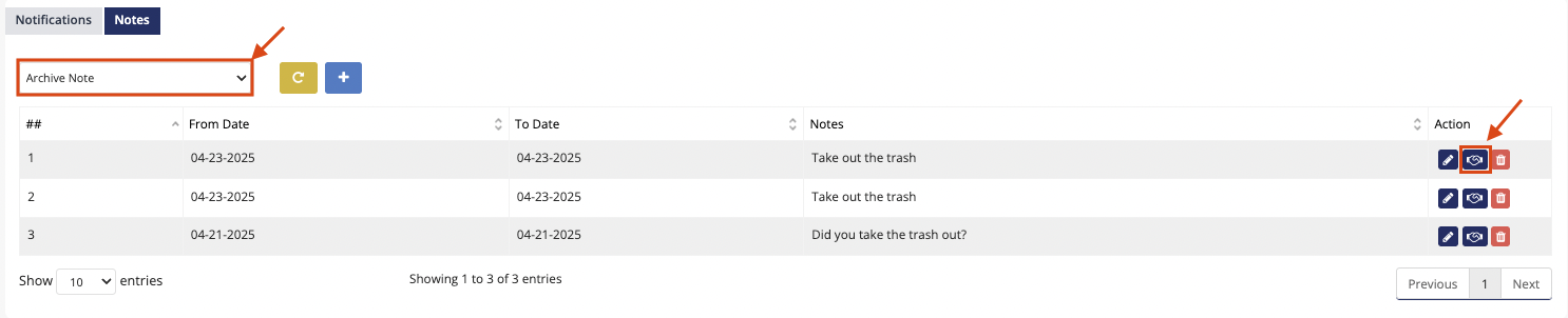 Note Info: Enter the message or instruction (e.g., “Take out the trash,” “Check the back door,” etc.).