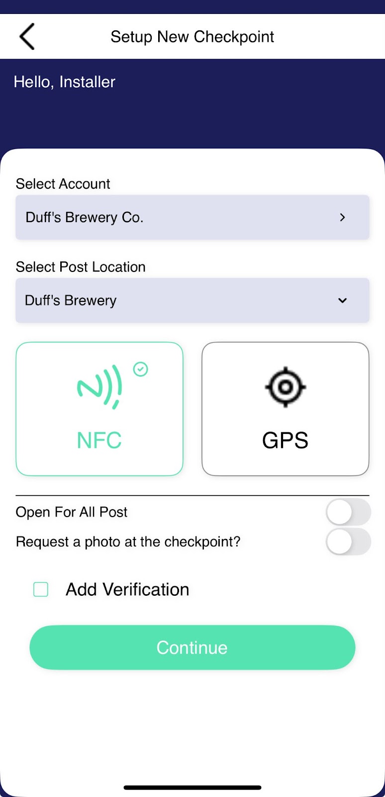 Next, you can choose whether to create a GPS Checkpoint or an NFC Checkpoint.