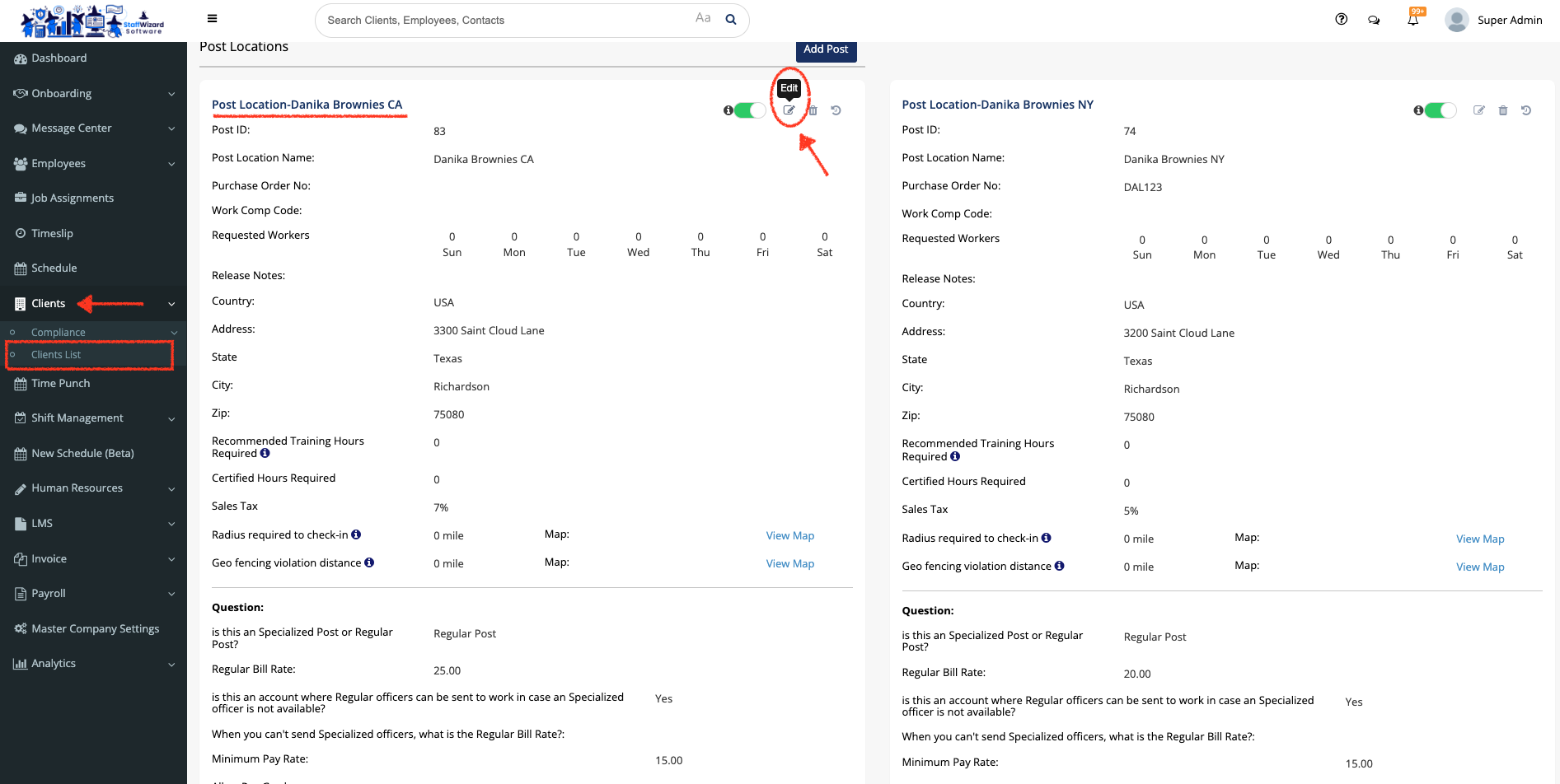 - Go to the 'Master Company Settings' tab on the main menu on the left-hand side of the StaffWizard page.
