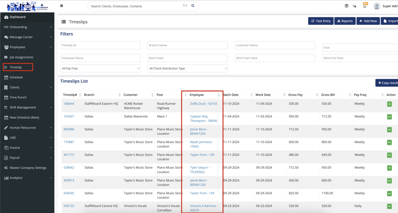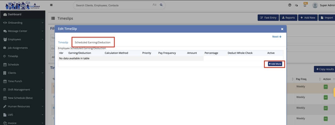 - If you are looking to create a deduction item within the Timeslip itself, go to the "Timeslip" module and open a timeslip that is associated with an employee.