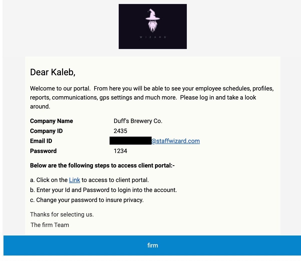 Your client will receive their login credentials via email immediately after you update the information.