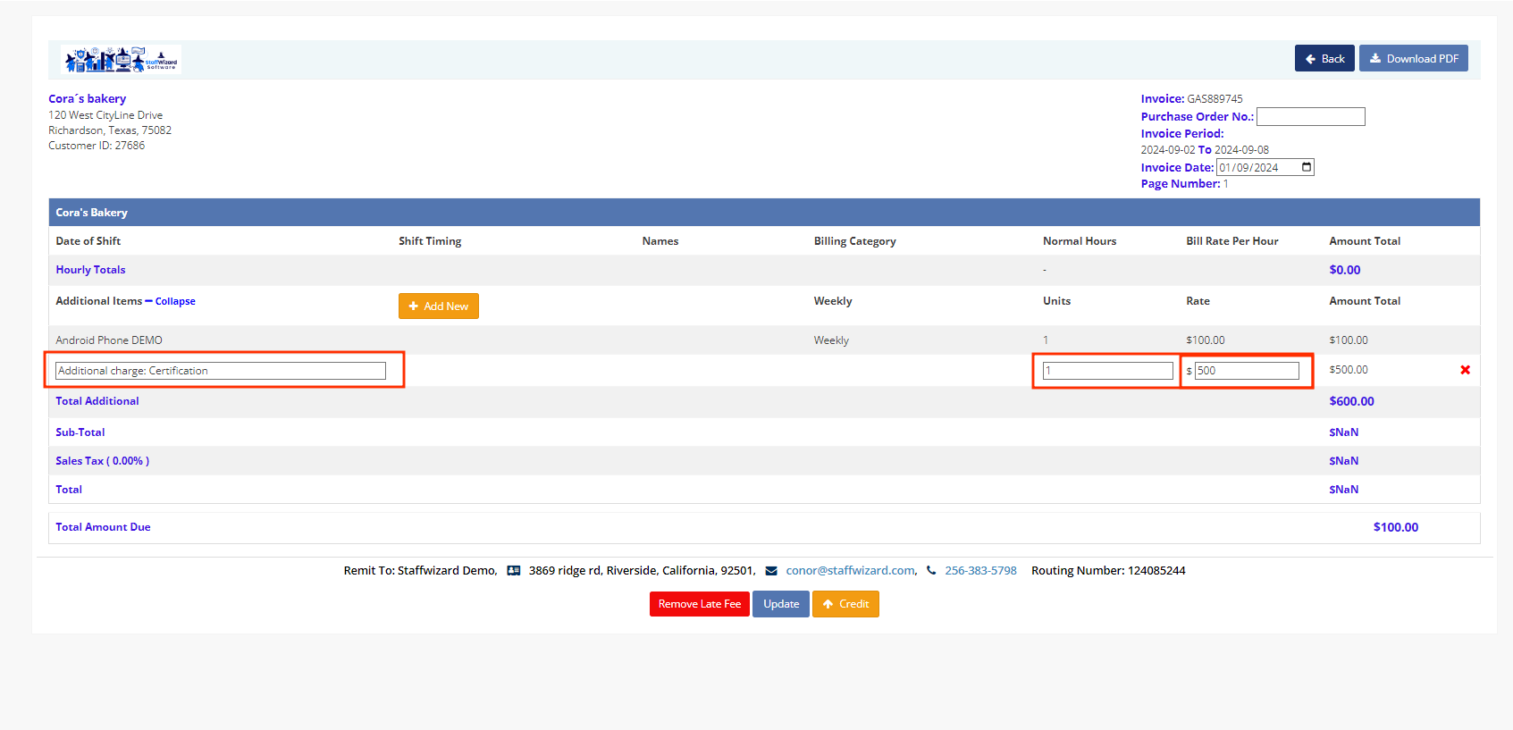 If an invoice is not approved, you have the ability to configure "Additional items" as an extra charge for your Client.