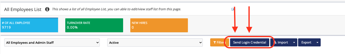 On the right-hand side of the screen, you will see a large blue button labeled “Send Login Credentials.”