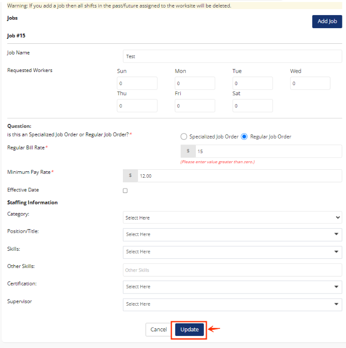 - To save the changes you have made for both areas, scroll down and click the button "Update".