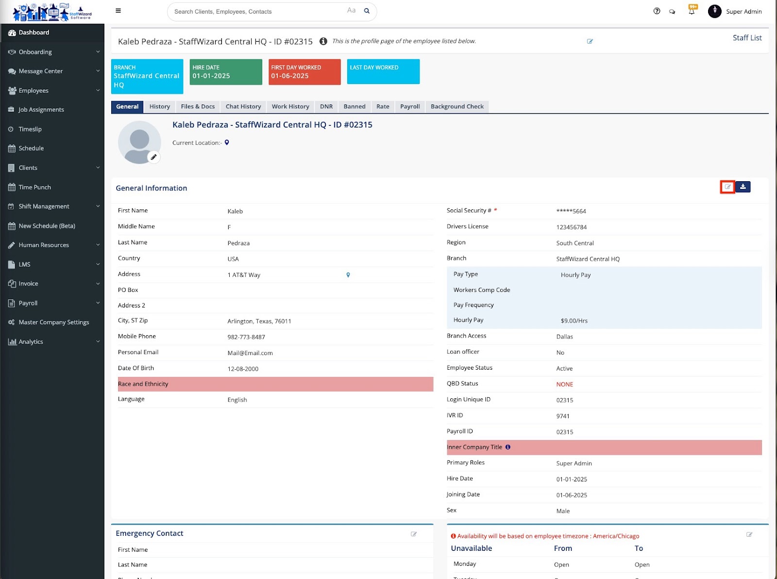 Select the employee you want to change to either an admin or a standard user, then click the edit icon next to their name. This will open their profile, where you can update their access level.