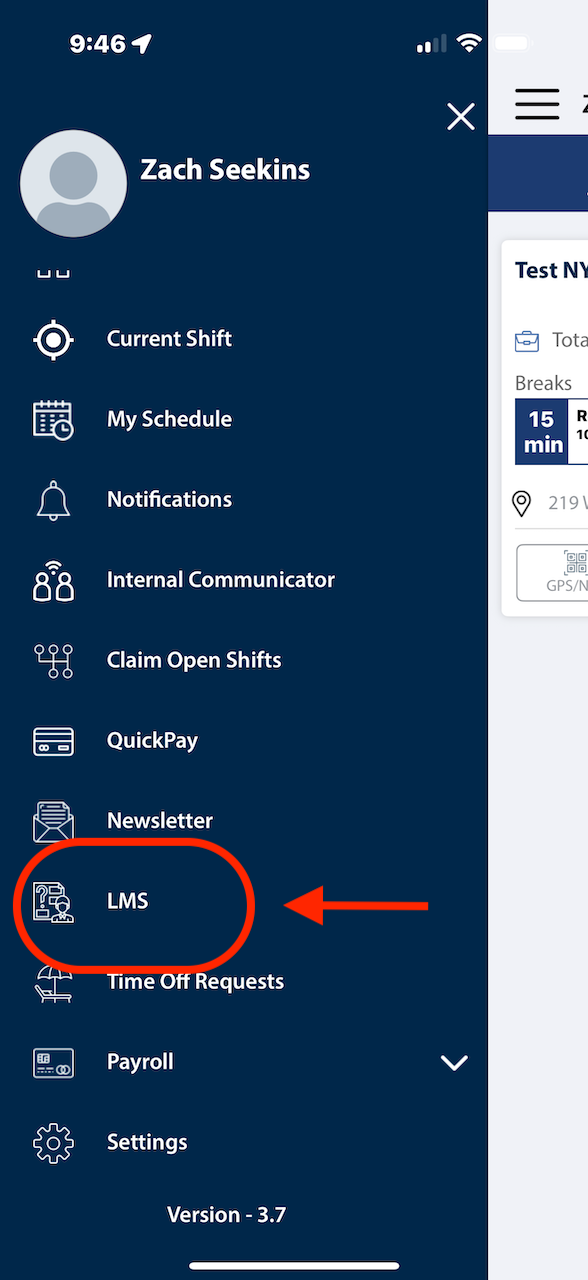From the menu, select LMS (Learning Module System) to access available learning content.