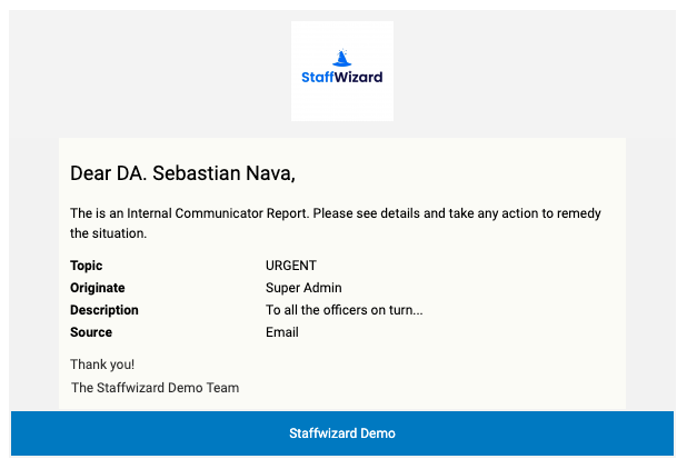 - The employee will receive the message at the source selected, in this case to his email.