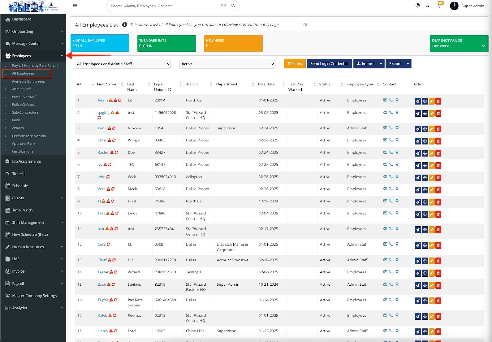 Navigate to the left-hand menu and select “Employees.” A dropdown menu will appear—click on “All Employees,” then choose the employee you want to view disciplinary actions for.