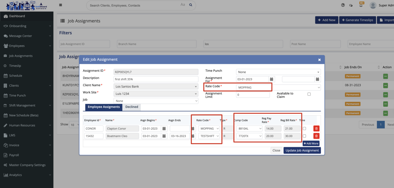 In regards to "Job Assignments", they result in timesheets that have the ability to be manually entered and contain an area for Rate Codes.