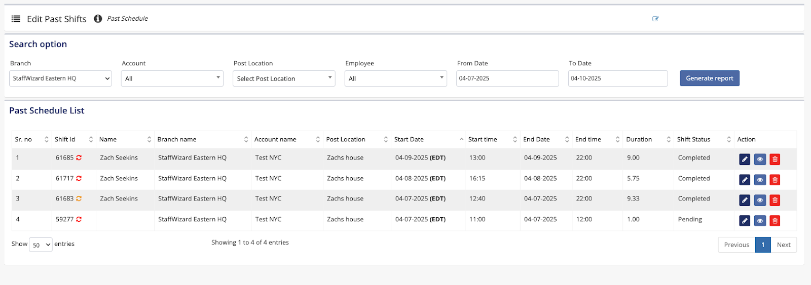 - Edit Past Schedules