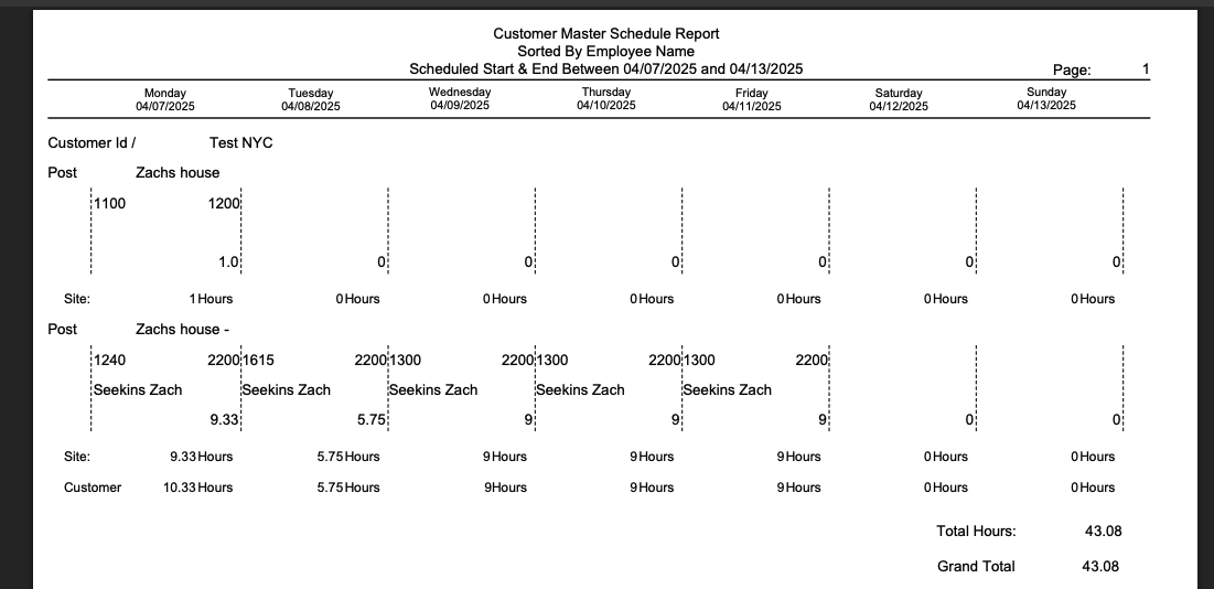 Shows scheduled hours, shifts, attendance, and other key data for individual employees. Can be filtered by date range, position, or site.
