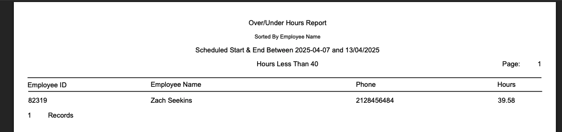 - Useful for tracking under 40 or over 40-hour thresholds to manage overtime.