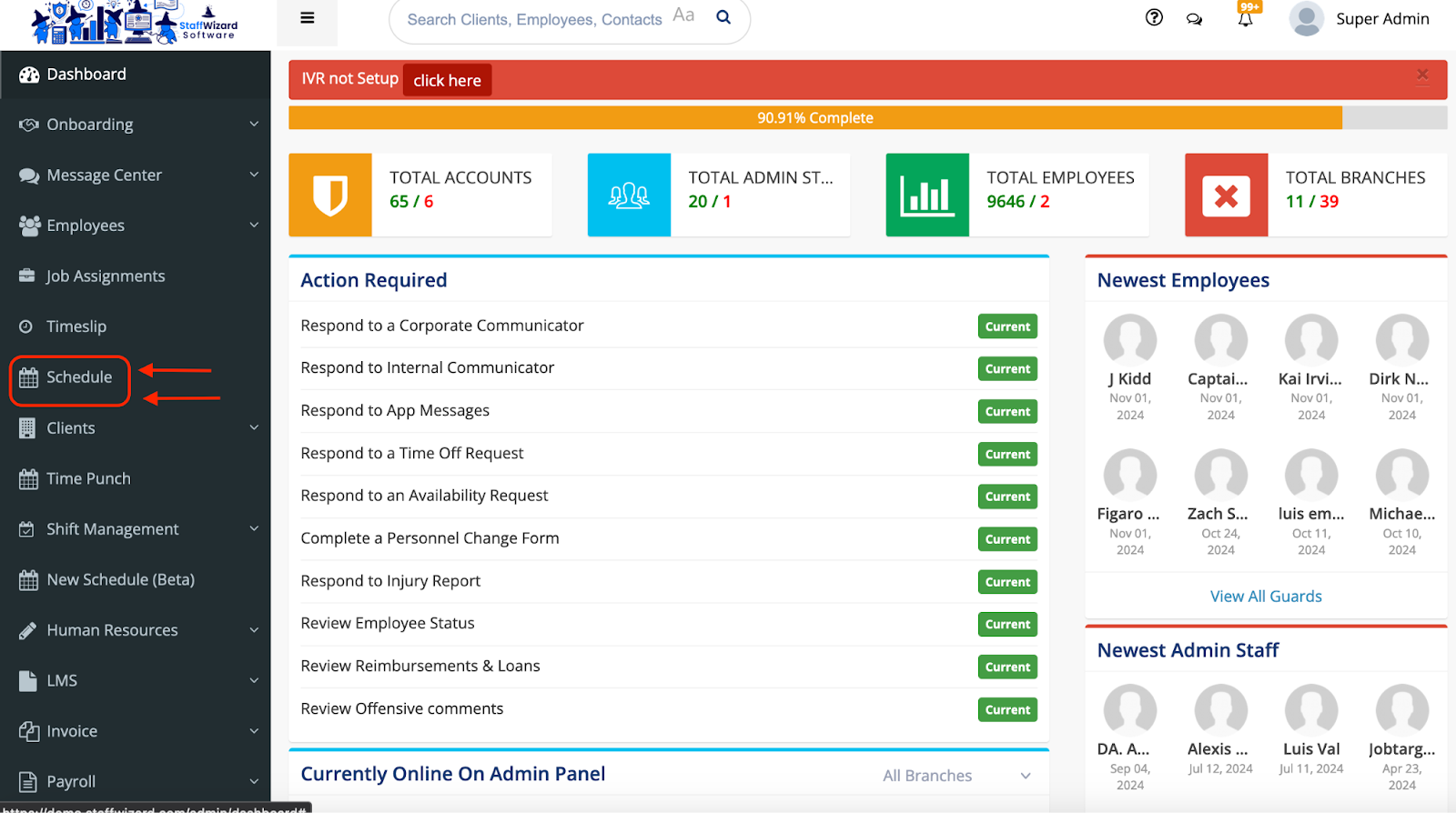 2.2 You can access different options here to look up accounts, employees, and schedules.