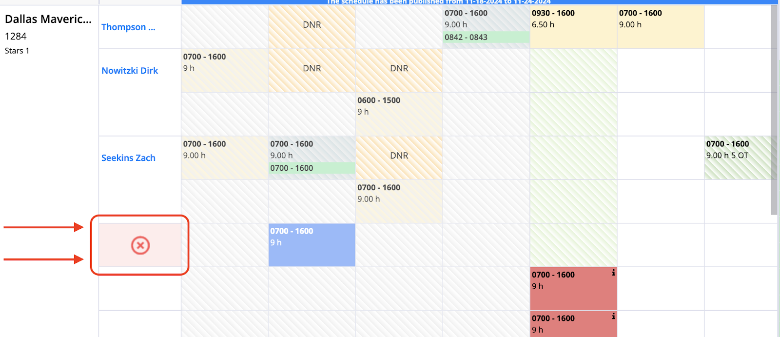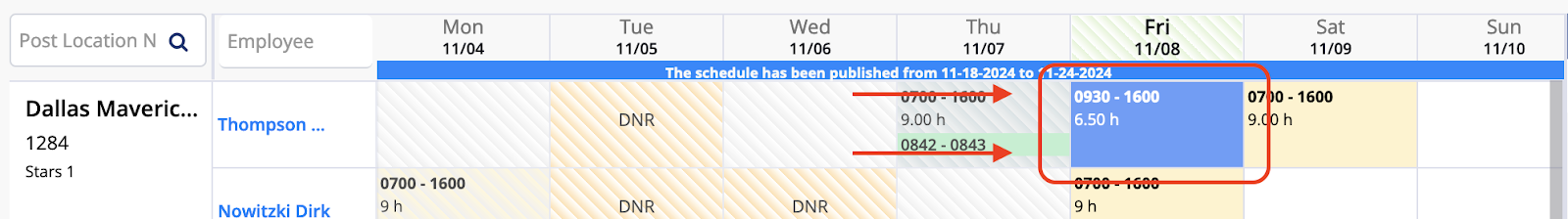 6. This will show where the shift was applied to and who it's assigned on the left-hand side.