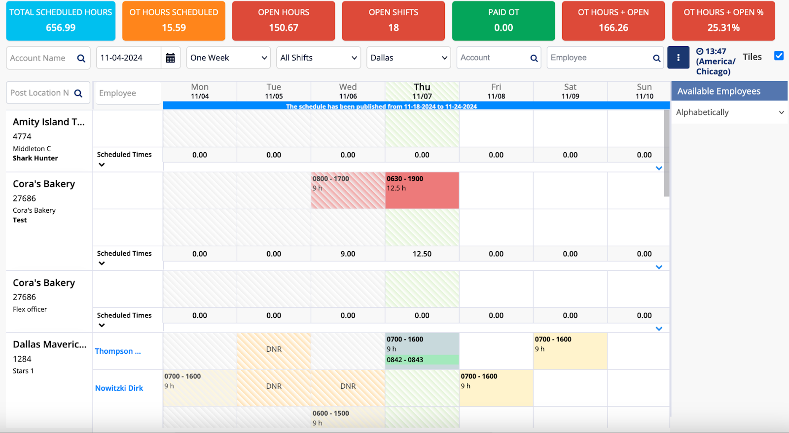 - Open shifts