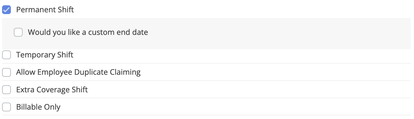 5. Once all options are selected for the certain shift. You can then save the shift.