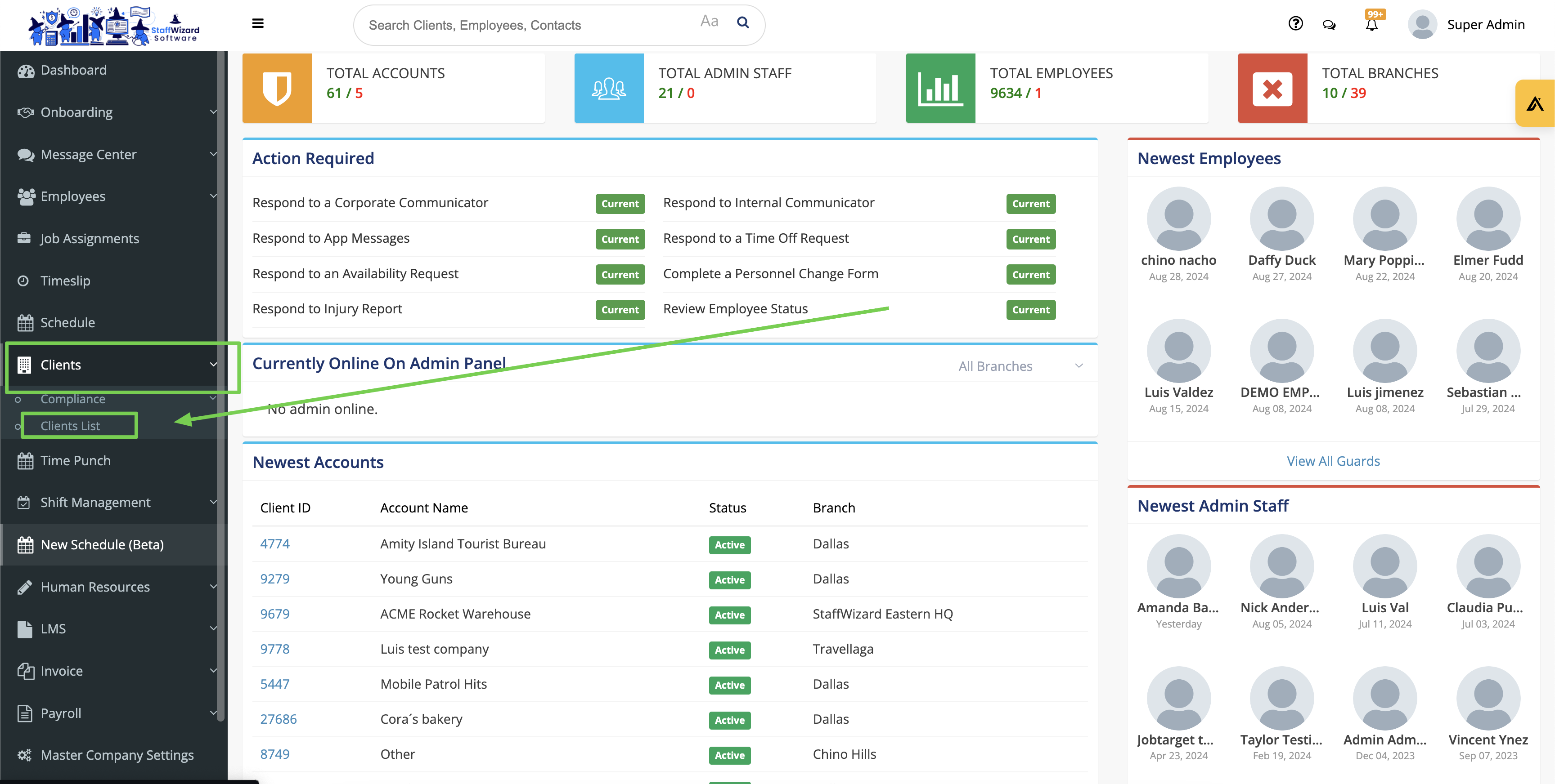 - To update AR aging terms for a specific client, first select the "Client" module from the navigation panel on the left-hand side.