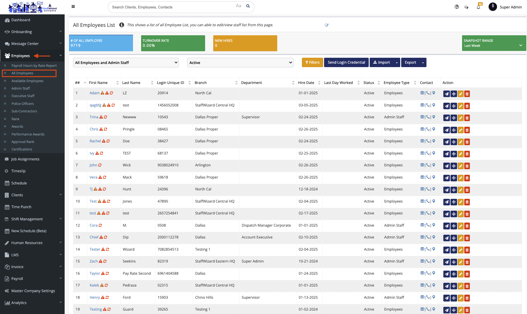 Navigate to the left-hand menu and click “Employees,” then select “All Employees.”