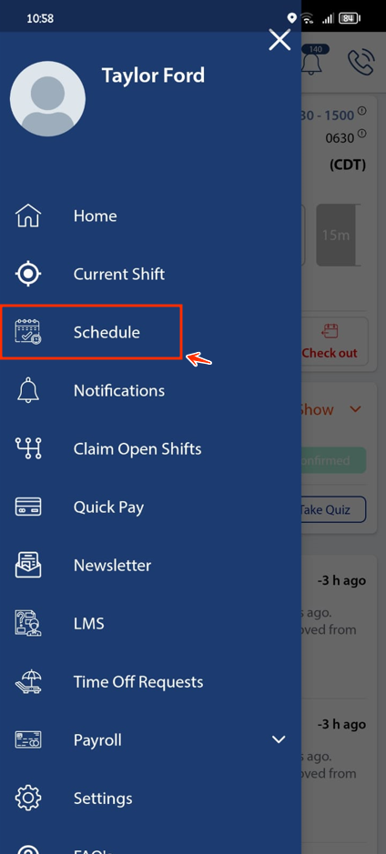 - Select 'Schedule' from the menu options.